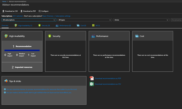 Azure Advisor (AzA) is a free service in Azure Portal that we can use to optimise many critical areas like, Costs, Performances, Security and HA.