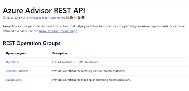 https://docs.microsoft.com/en-us/rest/api/advisor/