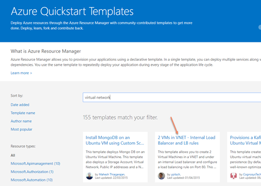 For example, to create a resource like an NLB navigate go to the Azure Quickstart Templates site and search for virtual network or NLB and select the template.