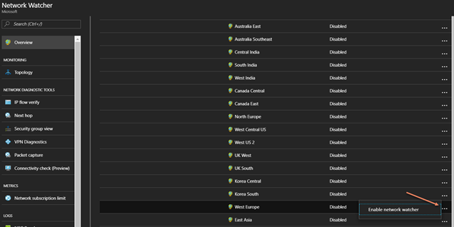 The important point is that the ANW need to be enabled in all the same regions that our resources we want to troubleshoot are located.