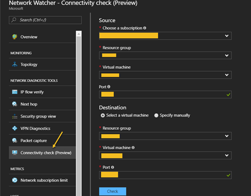 Select the Connectivity Check in ANW and set the source and destination machine