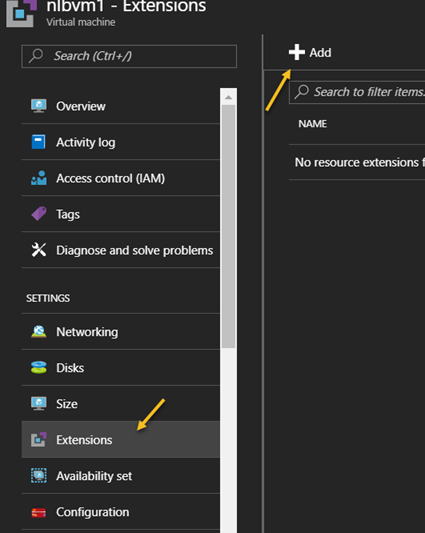 In order to do that we need to install the Network Watcher Agent NWA in both the machines, to install the NWA in an Azure VM we need to select the VM, select extensions