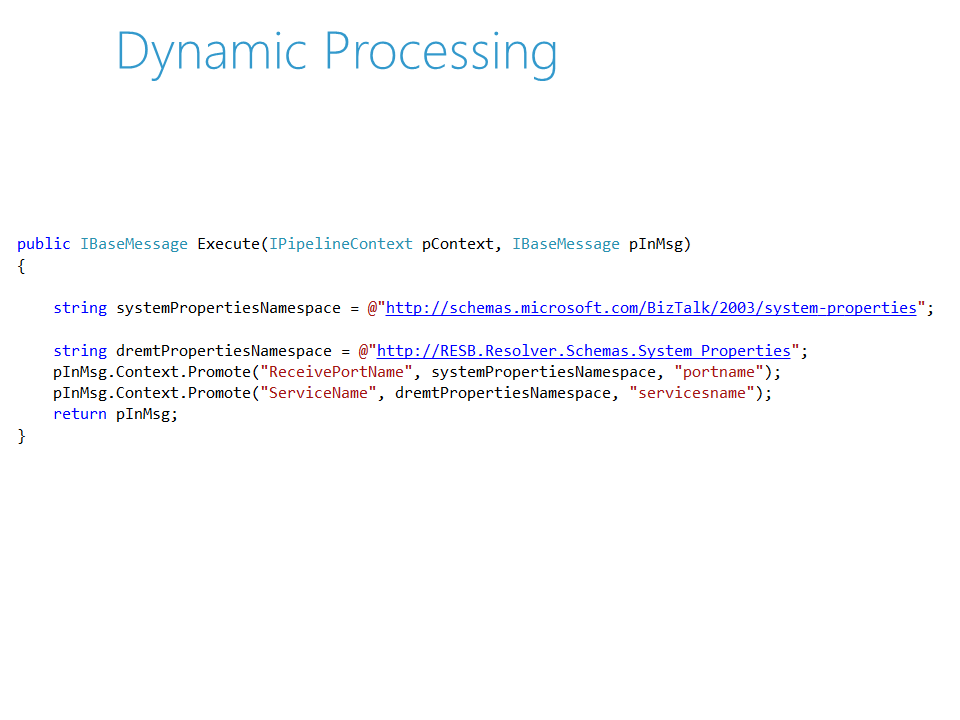 During the 2012 I was looking for something real dynamic to drive the processes inside BizTalk Server, there are different options to use, one is using BRE from pipeline components and orchestrations and drive the processing by SQL Server tables and context message as Microsoft ESB Toolkit another is creating some pipeline components and orchestrations and using a storage database as SQL Server with a number of tables to instruct our code to drive the messages and other more options.