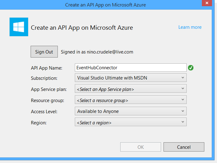 This API App which able to send a message to the Azure Event Hubs, very simple and fast to do and we can now extend this API App also to receive message from Event Hubs and create some other interesting features.
