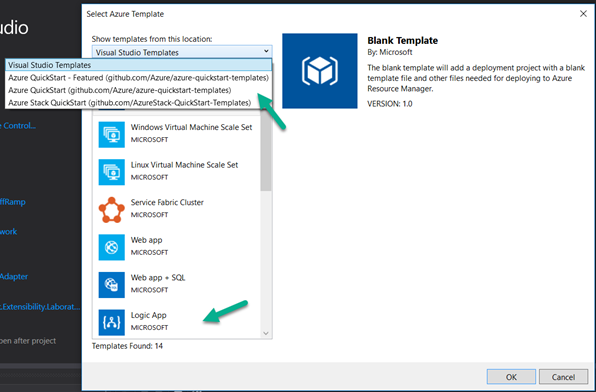 and we will receive a long list of templates, with the Logic Apps one as well.