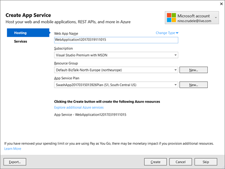 For the deployment, we can publish from Visual Studio or, very interesting and option for continuous integration, using GitHub, I tried both and I have been very satisfied by the simplicity of using GitHub.