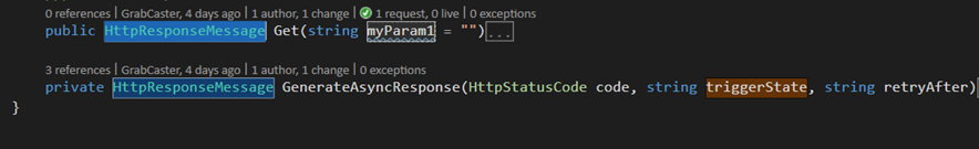 and we only need to implement our Get and GenerateAsyncResponse method able to provide the HttpResponseMessage that the Logic App flow needs to invocate for the trigger.