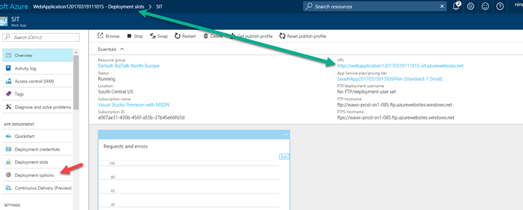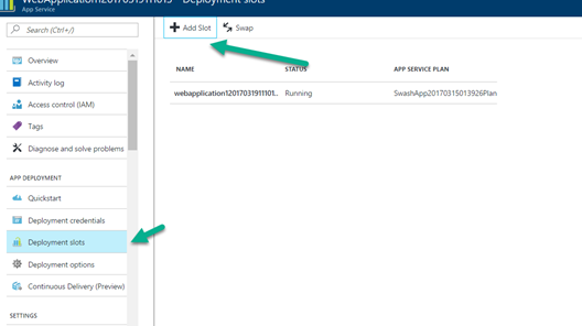 The slot is another Web API by REST able to integrate the source control we like to use, we need to select our new slot