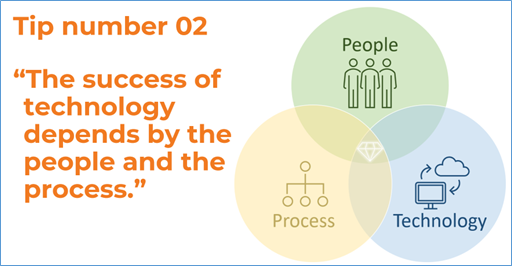 So here the tip number two, “The success of the technology depends on the people and the process.”