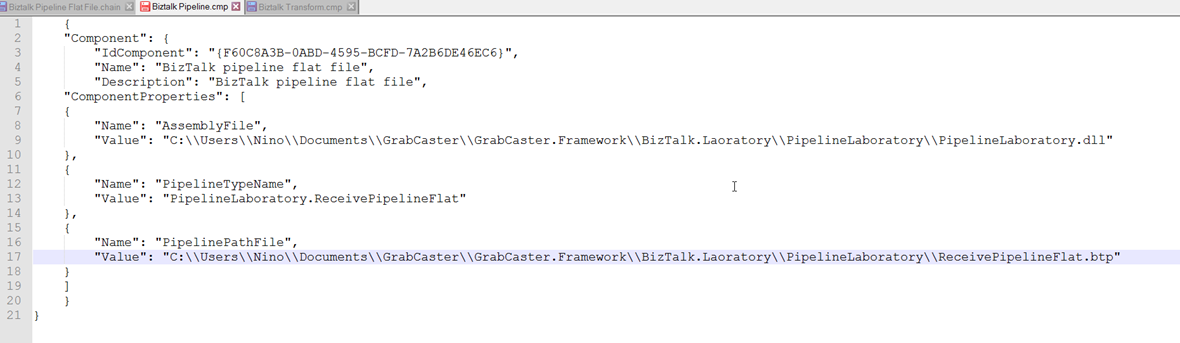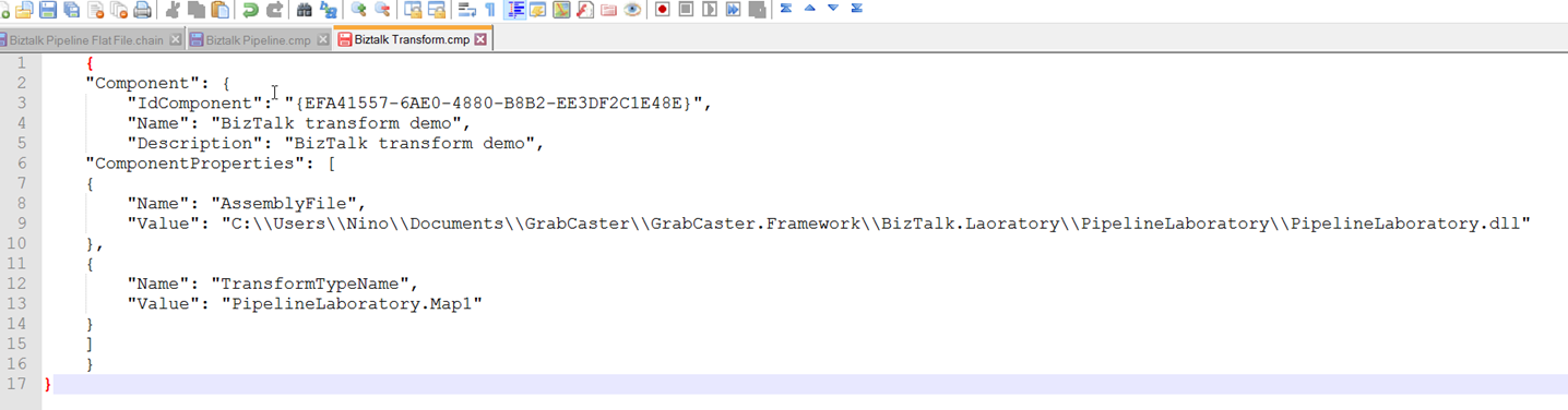 The BizTalk pipeline component executes a BizTalk pipeline DLL component and the BizTalk transform component is able to execute a BizTalk map and using a DLL like a Map storage provider, this is very powerful because it gives me the opportunity to use the BizTalk Server artefacts inside GrabCaster and use the same BizTalk features in real time performances, thousands messages a second using BizTalk Pipelines and BizTalk Transformations, I will write another post very soon about that.