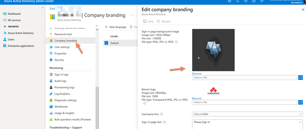 Select Azure AD and click on Company Branding