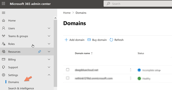 Select Settings > Domains