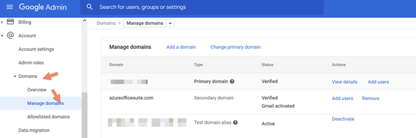 Navigate to https://admin.google.com/ac/domains/manage