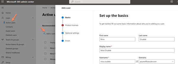 Now go in directory Users and create the same user as we did in Azure AD