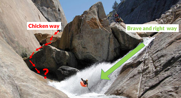 I do and love kayaking, and in this community, we have this saying, “let avoid the chicken way”. The chicken way is the “safer way” to engage a white-water rapid river, and it is usually “safer” than the brave one.